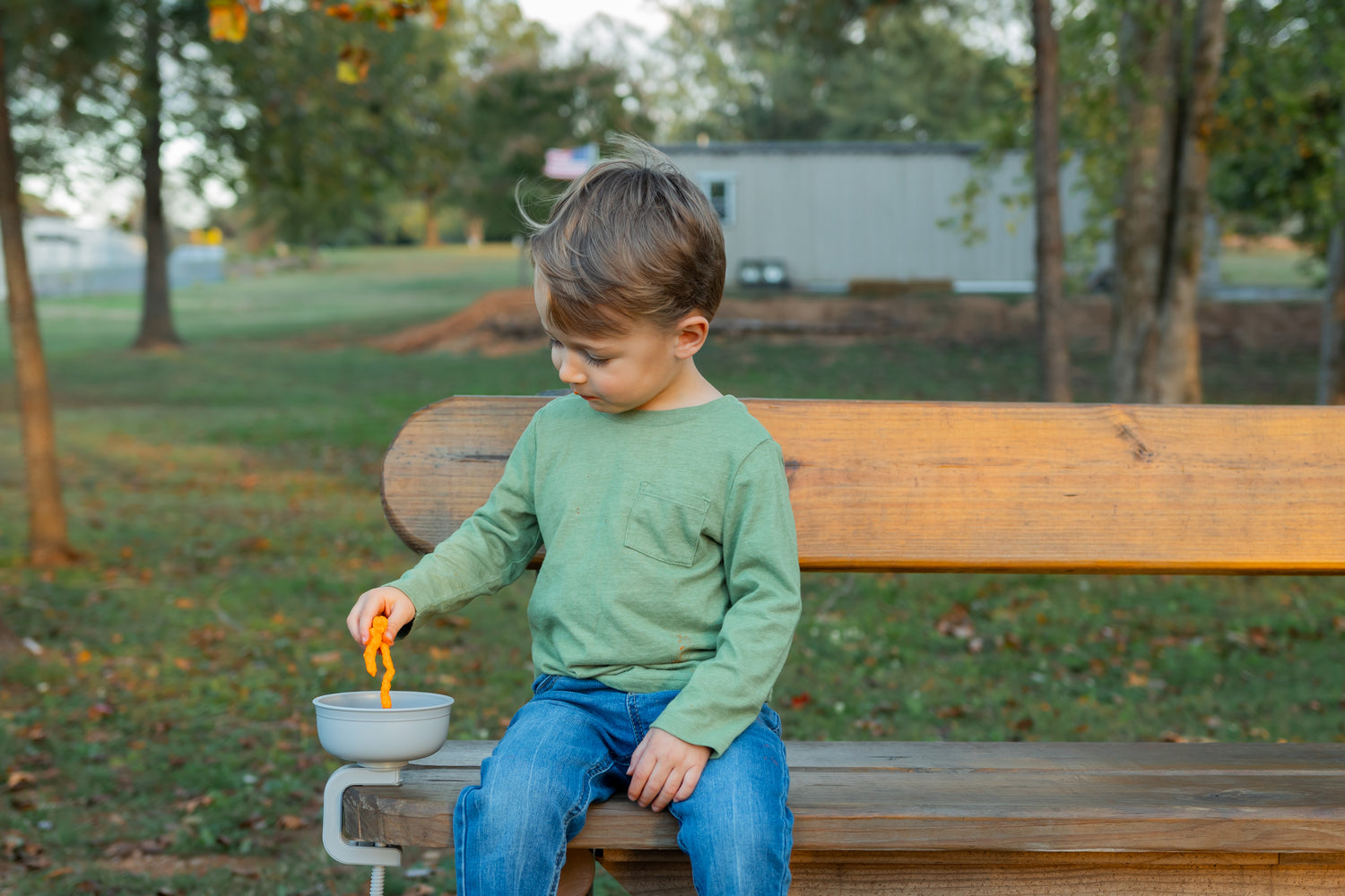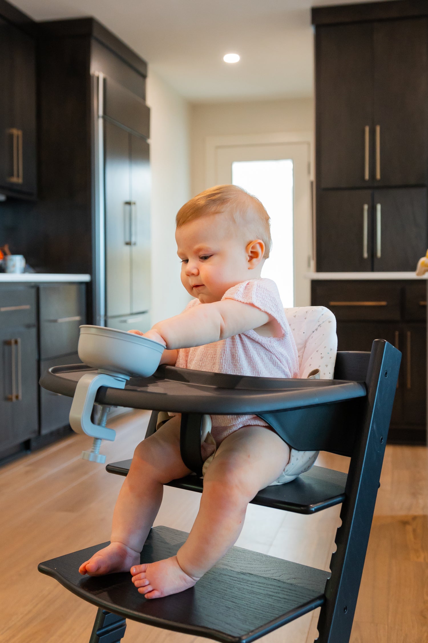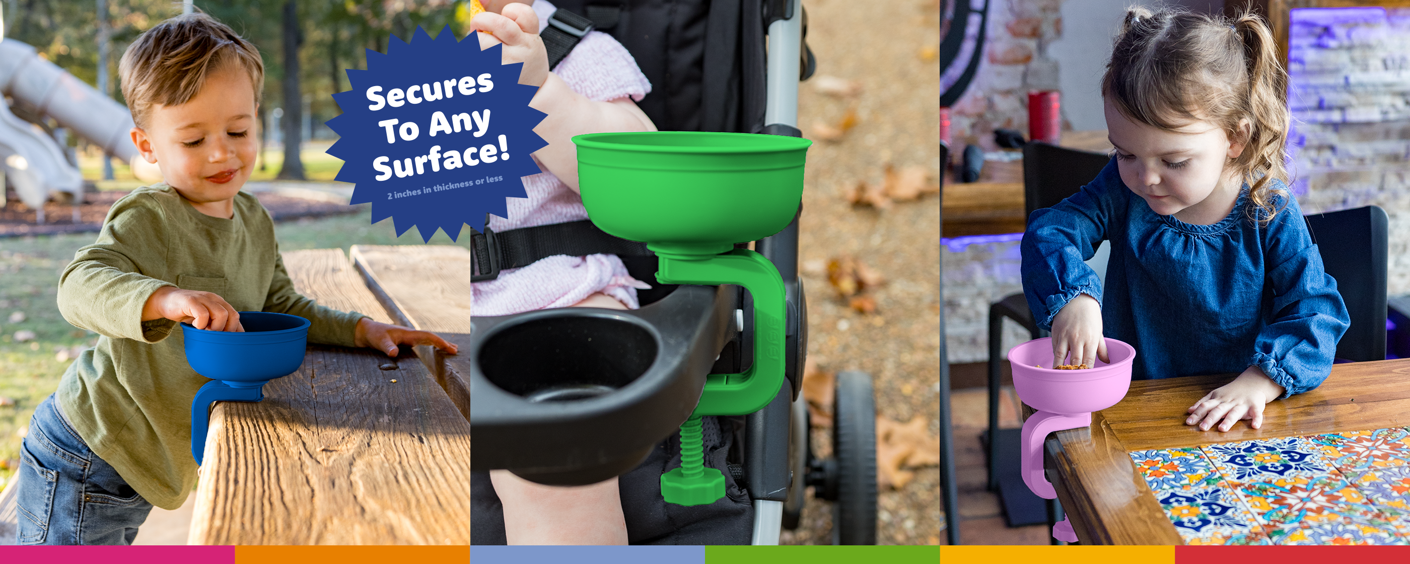With TwistaBowl's included TwistaClip, you can secure your little one's snack to any surface up to 2" in thickness!